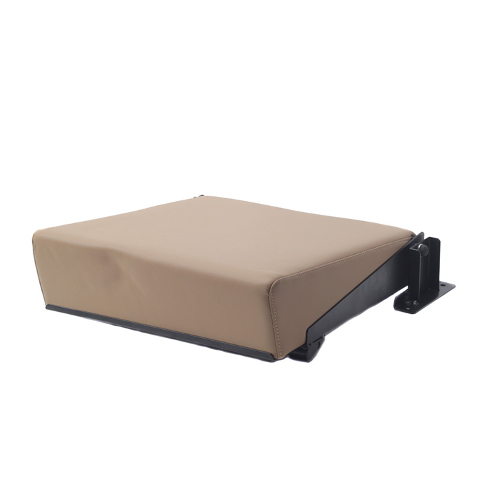 Rear tip-up jump seat in Camel vinyl. Includes mounting brackets and strap for securing in folded away position.