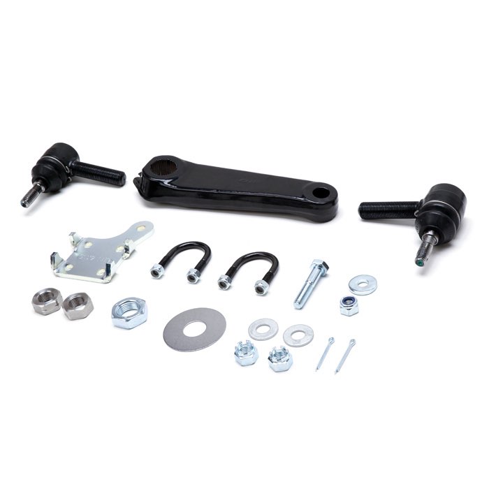 This kit includes a drag link bar made from 30mm solid 303 stainless steel with full-size lock nuts. 1 left-hand threaded tie rod end, 1 right-hand threaded tie rod end, a left-hand drive steering damper bracket(with mounting hardware), and the straight drop arm.