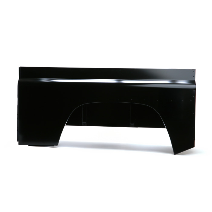 Left rear side panel and rear panel with interior right angled wheel arch assembly for all 90 models with a seat bulkhead. New Land Rover Genuine Part. Supplied in E-Coat electrostatic finish. Ready for paint. Made in the UK.