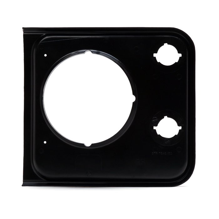 Right hand headlamp finisher without horn vents. Graphite Black.