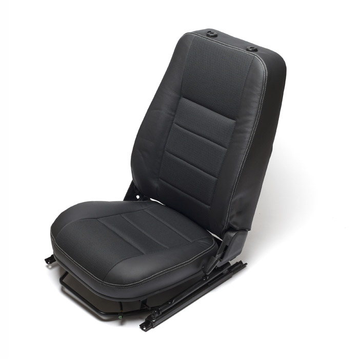 Genuine Land Rover cloth and leather, heated, left front seat with map pockets for Defender. Does not come with headrest, use headrest LR026311.