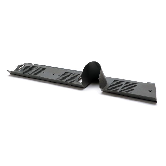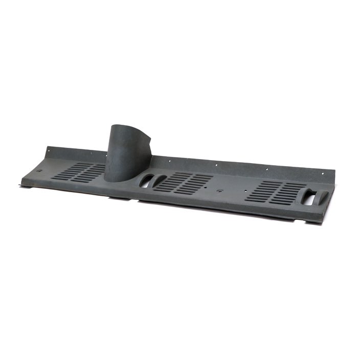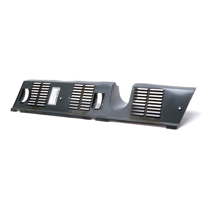 Used Genuine upper dash plastic facia panel that conceals the defroster hoses and fresh air vents for a 1983-1998 left hand drive Defender with front mounted fresh air vents. Dark granite.