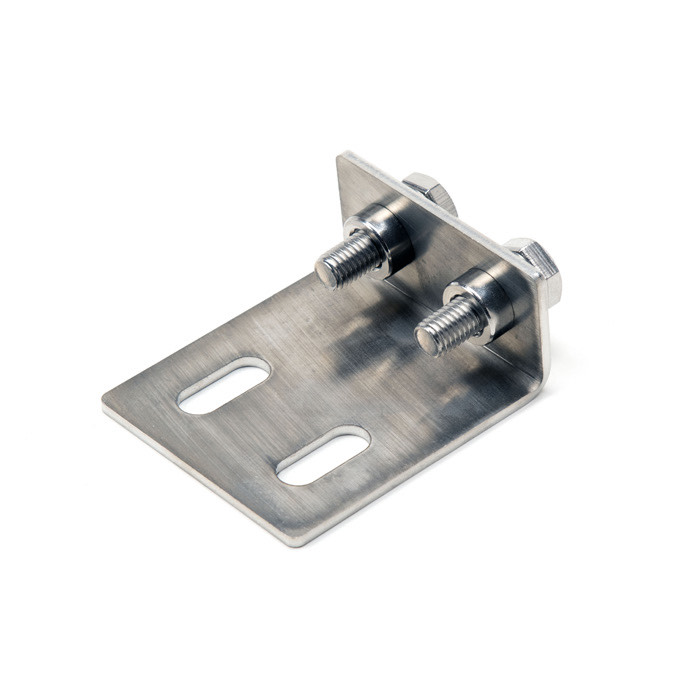 Stainless bracket for front seat belt buckle and middle lap belt. Fits both left and right hand side. Note that the fixings are now metric.