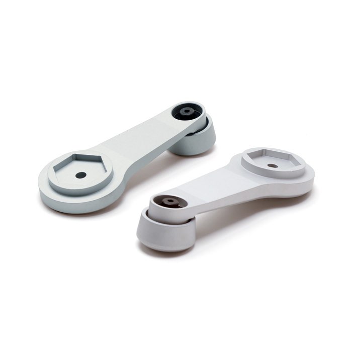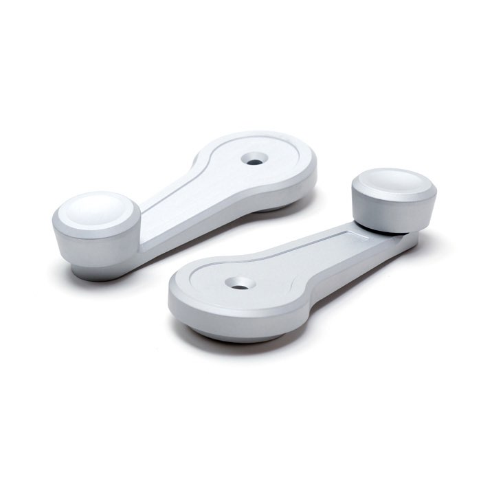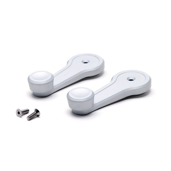 Upgrade your Defender or Range Rover Classic interior with silver anodized aluminum window crank handles. Sold as a pair. Includes mounting screws.