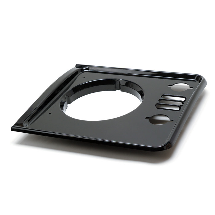 Head lamp plastic facia panel with horn vents in gloss black. Please note that the gloss black finish is not a color match for an original genuine front grille.