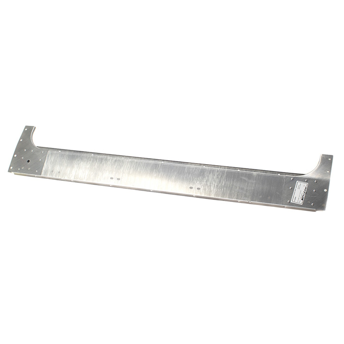 Alloy kick panel attaches to the front of the middle floor board and encloses the back width of the seat box assembly in all Station Wagon and Crew Cab models. Made in the UK.