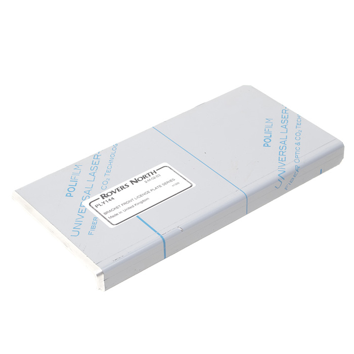 Aluminum front license plate bracket which mounts to the top of the bumper. Replica of the Series NADA license plate holder. Fits a standard North American size plate. Hole drilling required. Made in UK.