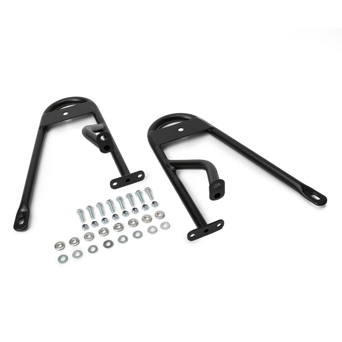 Raised seat belt bracket set without the crossbar. Allows you to run 3-point seatbelts in your Series while the hardtop is off.