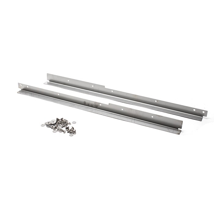 Polished stainless steel angle covers the top of the sill channel to finish off the interior threshold visible when your door is open. Set includes 2 front door Thresholds with seat belt mount cutout. Designed to fit front sills with the lower front seat belt mount located in the rear corner of the front sill. Includes stainless steel installation hardware. Made in Great Britain.