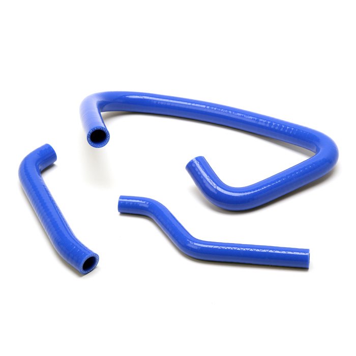 Blue silicone breather hose kit for Defender 300Tdi. Includes side cover to rocker cover hose, cyclone to oil drain hose, and cyclone to air cleaner hose.