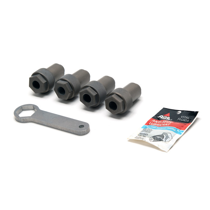 The Door top Nuts are CNC machined from Billet 6061T6 and come with a matching spanner to tighten the nuts down. We also include anti-seize to prevent the possibility of corrosion when using original door tops with steel studs.