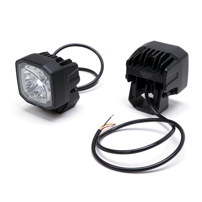 White super bright 5,700 lumine 28 LED combination flood and long range spot lamp set. Compact 3.6 inch cube design is 4.29 inches tall on stainless steel stand, 3.58 inches wide and 2.95 inches deep. Robust construction with aluminum housing makes this compact LED cube set ideal for off road and overland use. Sold as a pair with stainless steel mounts, plug in connection cables, hardware and installation instructions.