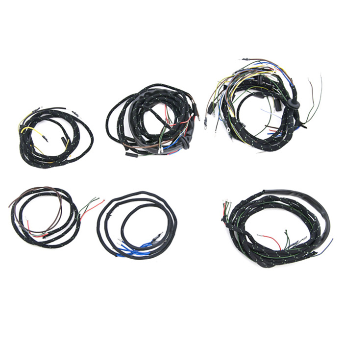 Main Wiring Harness Set for 1958 - 1961 Series II, Long Wheelbase Land Rovers with a petrol engine. Wired for vehicles with the original style generator and with turn signals. Manufactured with PVC Wire, with a Braided Cloth Wrap. Includes Main Harness, Engine Harness and rear body harness.