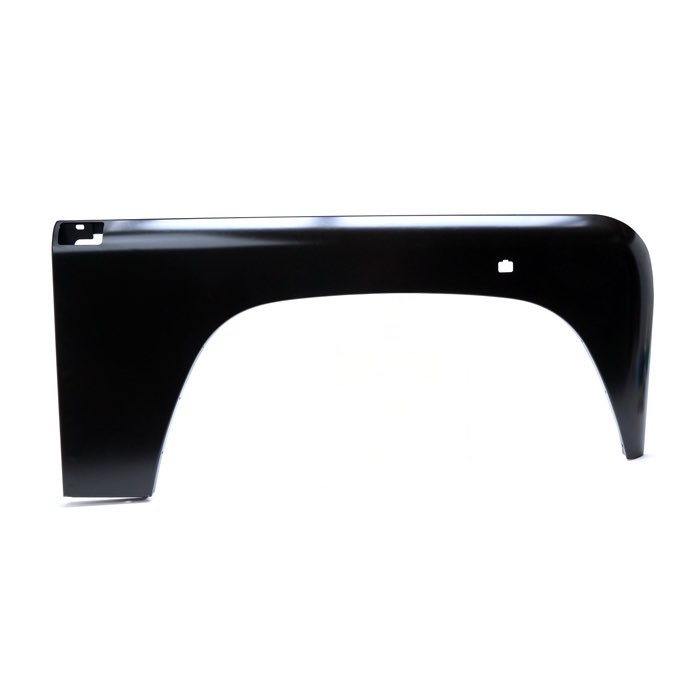 Wing panel, right side, outer, front fender. Pre-cut for roll cage mount and side lamp. Finished in electrostatic E-Coat black primer. Ready for paint.