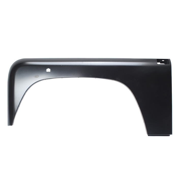 Wing panel, left side, outer, front fender. Pre-cut for roll cage mount and side lamp. Finished in electrostatic E-Coat black primer. Ready for paint.
