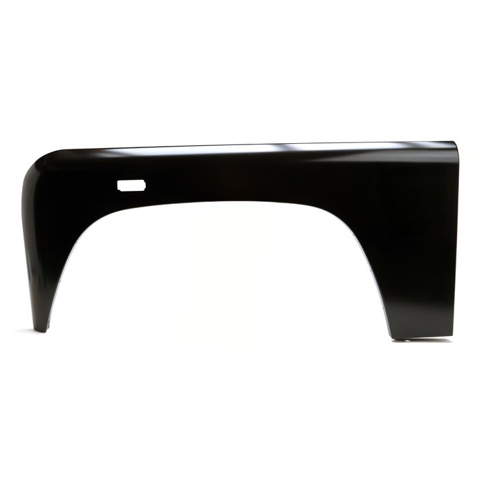 Wing panel, left side, outer, front fender. Pre-cut for lamp. Finished in electrostatic E-Coat black primer. Ready for paint.
