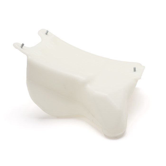 Washer reservoir with two pump locations, with a single pre-drilled hole. Vehicles with two pumps will require drilling