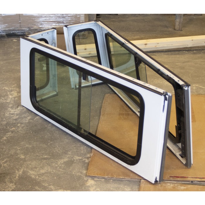 New take-off roof side set from a 2012 Defender. Right and left roof side panels with sliding side windows and fixed rear windows.
