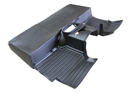 Includes a one piece floor mat section that covers both driver/passenger footwells and the transmission tunnel between them, these footwell sections have additional foam noise suppression panels on the underside. A seatbox section that covers all 3 open sides of the seatbox (note, will require cutting to allow access to storage sections and gearbox access plate as well as hole clearing to suit your vehicle's seat mounting points etc) and a firewall/bulkhead section. The whole kit is water repellent and flame retardant, made of extra thick, cast, dense, black polyurethane averaging 1/2" thick.