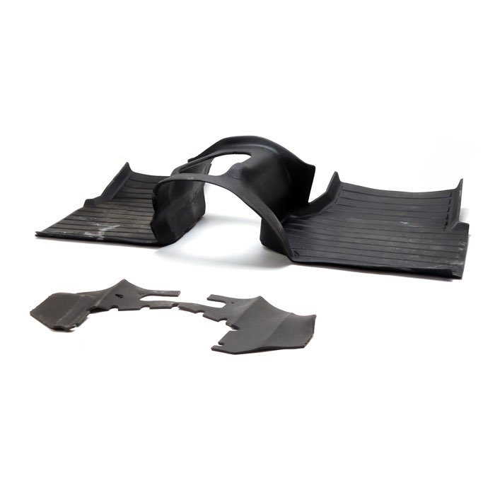 Lightly used partial set. Includes floor/transmission tunnel mat and center bulkhead section. Does NOT include seatbox cover, gear stick and handbrake gaiters, or seat mounting bolts and spacers.