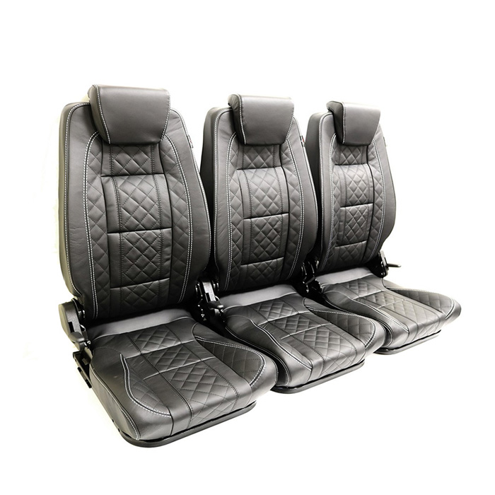 One of the key features of these second-row Premium High back seats is the adaptations in use. All these seats are available as left hand outer, center, right hand outer, or the set of all three. Installing only 2 seats, you can fit a center storage box or leave a gap for rear access. They provide increased legroom and good head height for passengers, while the ability to fold the seatbacks down flat against the base provide extra space when loading larger items.