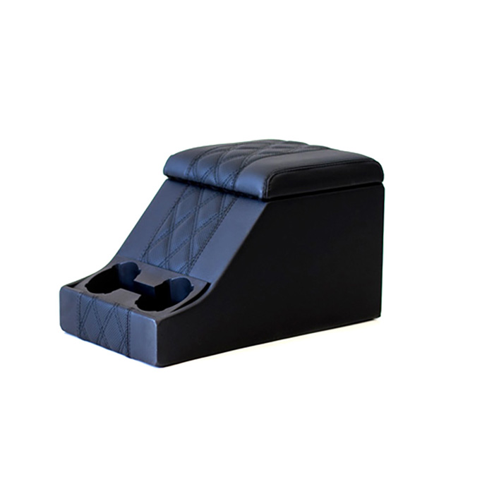 The Premium Cubby box has a 50mm (~2”) padded lid which is at the correct height for improved comfort and arm support between the seats.