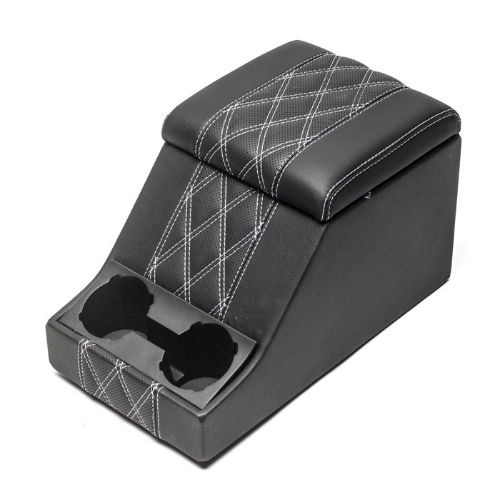 The Premium Cubby box has a 50mm (~2”) padded lid which is at the correct height for improved comfort and arm support between the seats.