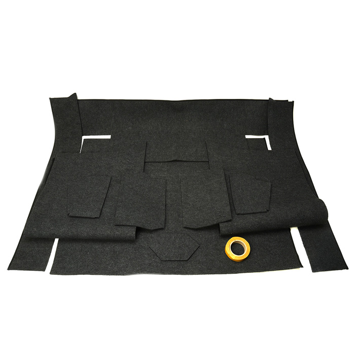 The rear floor mats, seat box/wheel arch's have an acoustic backing approximately 8mm thick overall, giving these parts sound and heat insulation. Also included are the side body panels, rear of bulkhead, handy extra sections for rear light covers and fuel pipe panel.