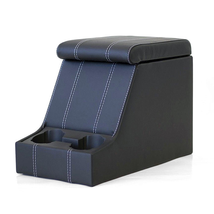 The Premium Cubby box has a 50mm (~2”) padded lid which is at the correct height for improved comfort and arm support between the seats. It also features padded sides for an overall softened feel.