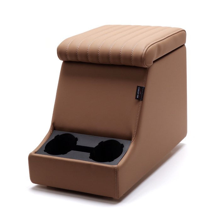 The Premium Cubby box has a 50mm (~2”) padded lid which is at the correct height for improved comfort and arm support between the seats. It also features padded sides for an overall softened feel.