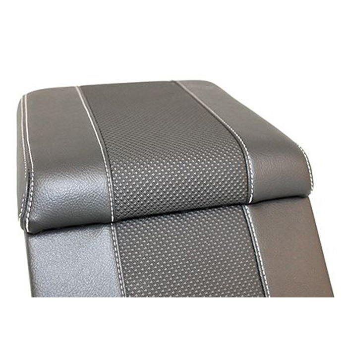 The Premium Cubby box has a 50mm (~2”) padded lid which is at the correct height for improved comfort and arm support between the seats. It also features padded sides for an overall softened feel.