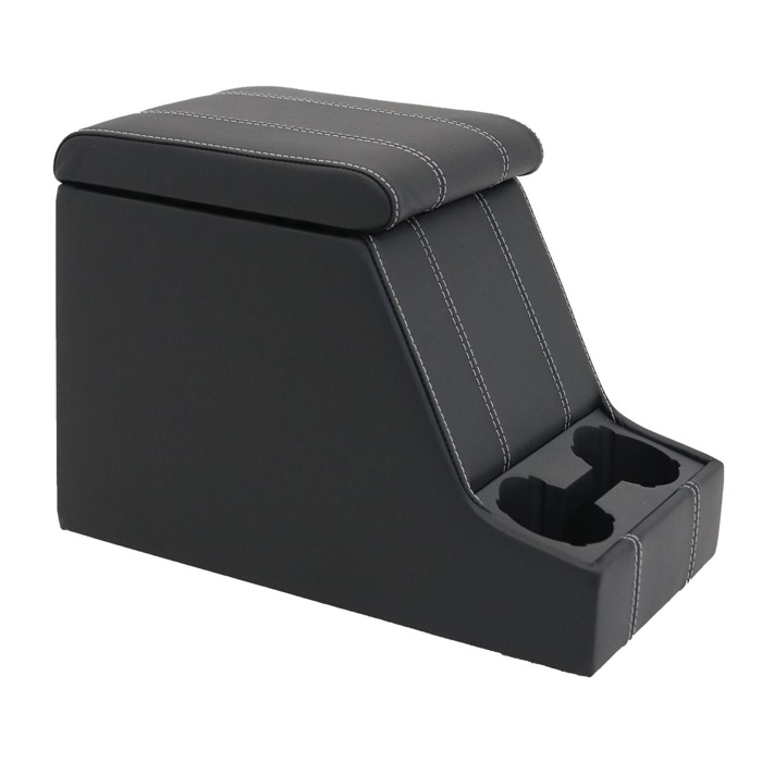 The Premium Cubby box has a 50mm (~2”) padded lid which is at the correct height for improved comfort and arm support between the seats. It also features padded sides for an overall softened feel.