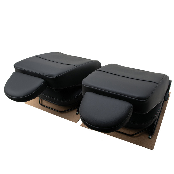 Puma style front seat pair in black vinyl with white stitching, heated.