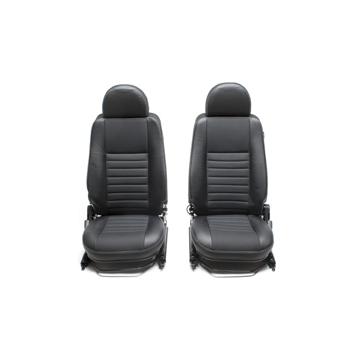 The Puma Defender front replacement seat from Exmoor Trim is supplied complete with runners and hardware. This is a direct replacement seat for the original front seating used from 2007 in all Defenders. The seat base is removable and the headrest is adjustable, with reclining seatbacks and smooth sliding runners.