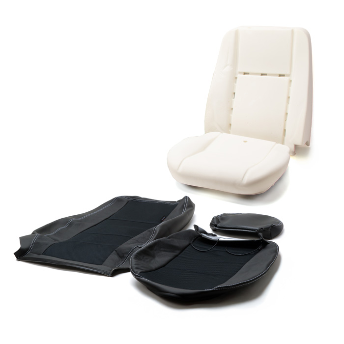 Puma Front Single Trim Kit consist of replacement covers for the driver or passenger seat back, base and headrest. This kit also includes new back and base foams along with trim pins and beading for one seat only.