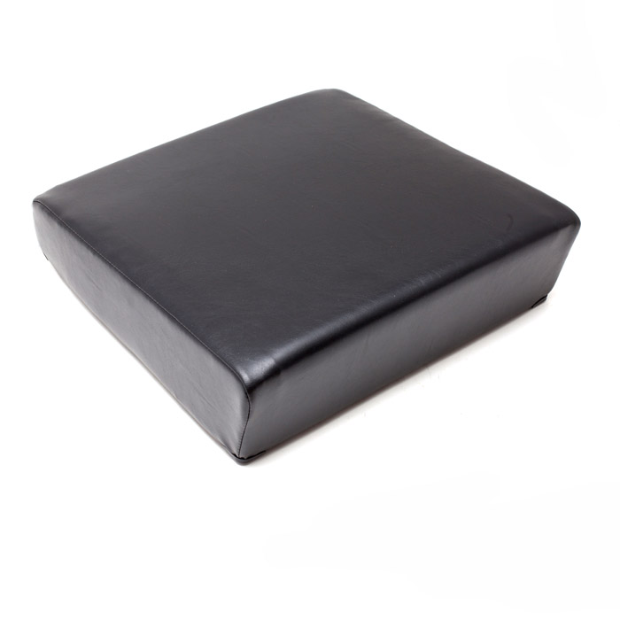 Black vinyl Standard front outer bottom seat cushion. Fits into adjustable metal seat tray. For fixed type bottom cushion that is retained by leather strap directly on to the seat box assembly use EXT374-BV