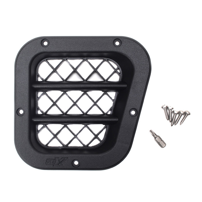 KBX Defender RH Side intake grille, satin black, standard. Sports styling, strength, & improved air flow. Quality injection moulded ABS products designed with attention to detail. Integral ribbed ABS mesh. Easy to fit using stainless steel Torx head screws for added security and finish. Torx screws & Driver Bit are included.