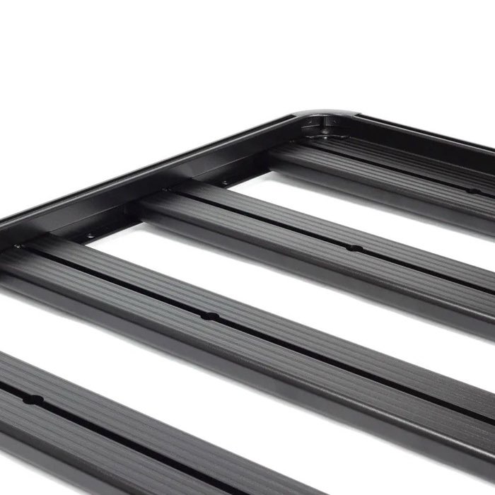This 1560mm/61.4" long 1/2 size Slimline II cargo carrying roof rack kit for the Land Rover Defender 110/130 contains Slimline II Tray and Wind Deflector, as well as 6 Gutter Mount legs for mounting the Tray to the vehicle. Installs easily with no drilling required.