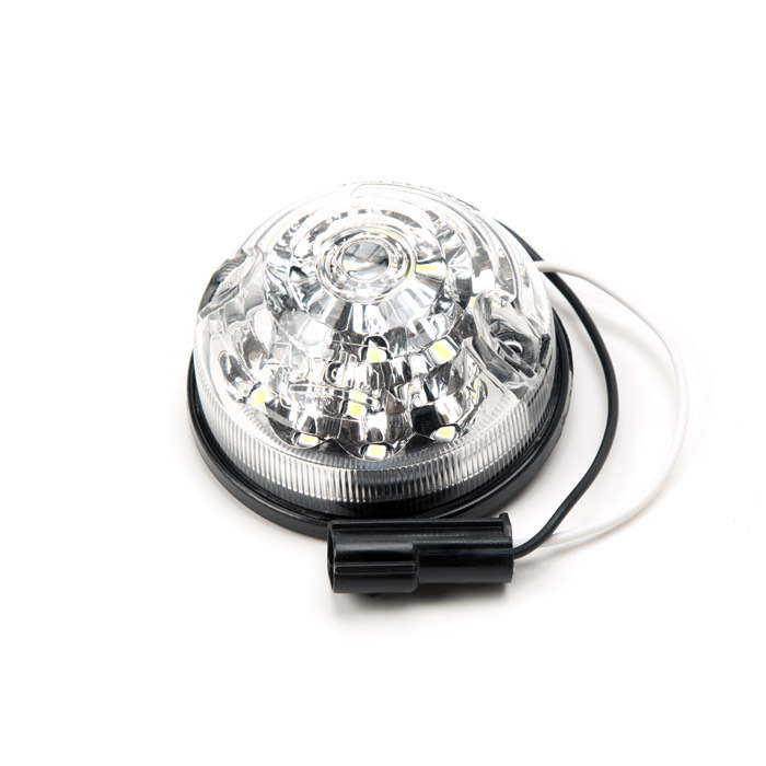LED parking lamp for Series and Defender. Clear lens, illuminates clear. Standard 2.75" inch light. This is the most common size lamp assembly fitted to Series and Defender models 1971 -2016. Lamp assembly includes 2 stainless steel fixing screws and foam mounting gasket. Supplied fitted with factory wire connector as used on all Defender models 1995 - 2016. For plug in adapter kit for pre 1995 vehicles use LAH02.