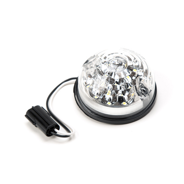 Front Directional lamp assembly: Amber LED with clear lens. Standard 2.75" inch light. Increased illumination for night operation with headlamps. Lamp assembly includes 2 stainless steel fixing screws and foam mounting gasket. Supplied fitted with factory wire connector as used on all Defender models 1995 - 2014. For plug in adapter kit for pre 1995 vehicles use LAH02.