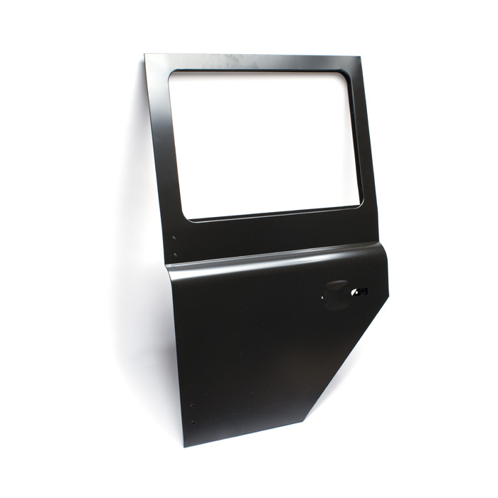 Defender 110 and 130 LEFT Middle Door Shell, 2005 on. This is the latest and safest reinforced door produced by Land Rover. Manufactured with galvanized skin over galvanized frame to prevent corrosion from dissimilar metals. Includes internal crash beam for improved side impact safety. Finished in black electrostatic E-Coat primer for superior corrosion protection.