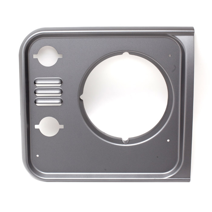 Right side, plastic, headlamp finisher panel with horn vents in Brunel Silver.