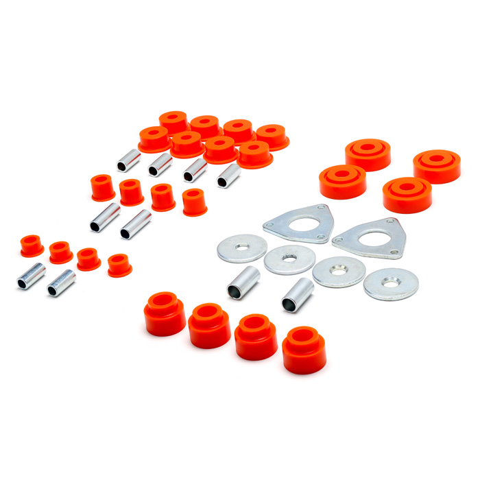 Polyurethane bushing kit. An easy to install, economical alternative to Genuine Bushings. Superior quality formulated for medium firmness to provide the best mix of handling and comfort for Land Rovers used both on and off road.