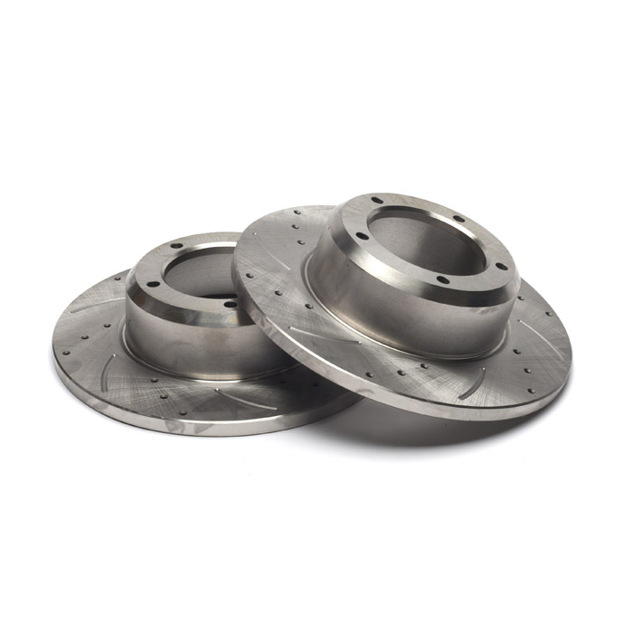 One set of two Non-Vented slotted (for gas venting) and cross-drilled (for cooling) performance brake rotors.