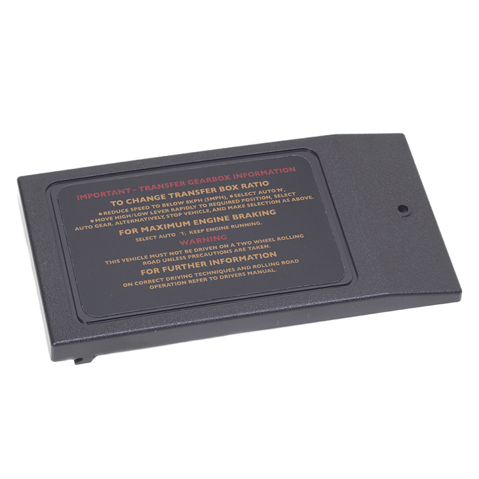Fuse box cover for Range Rover Classic complete with decals. This is a high quality reproduction for the interior fuse box panel cover that often breaks on these older Classics. It's a replica of the 87-92 version, though it will also "work" for 93-94 models.