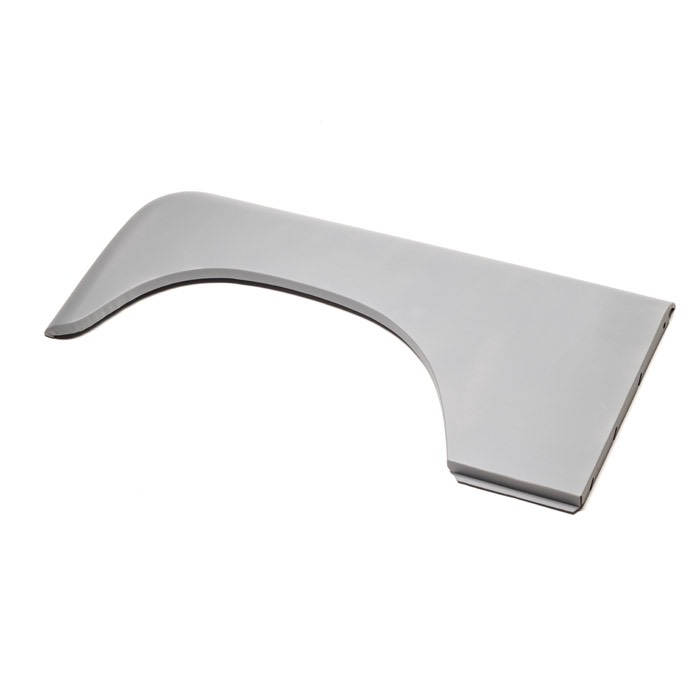 Aluminum outer wing skin, left hand front for LHD vehicles. A clean and accurate reproduction of the original. Made in England.