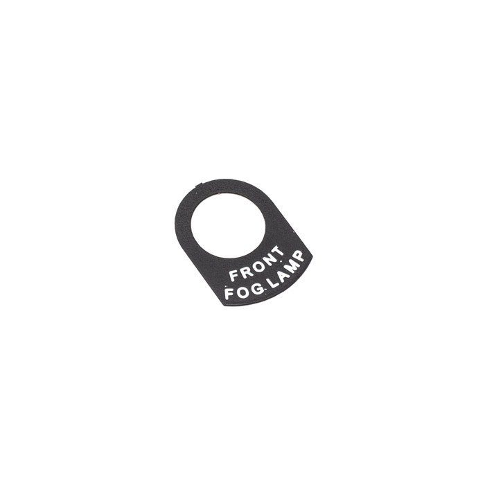 Front Fog Lamp label tag for dash switch. Made out of brass and painted black like the original plastic. Even though some of these labels didn't exist originally from Land Rover, it can be nice to add an original looking element that serves the purpose.