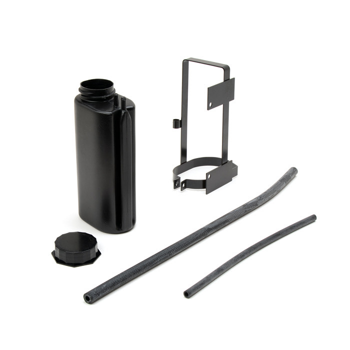 This overflow tank kit includes overflow bottle, cap, bracket, and hoses.