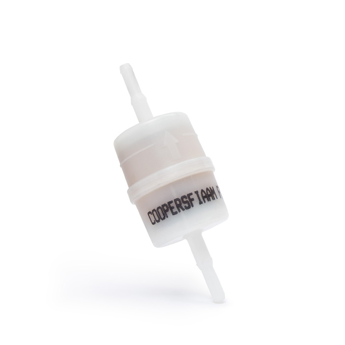 Filter for return fuel lines or breather lines. In-line type. May be retro-fitted to different vehicles in various applications for additional filtering.