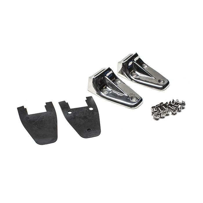 Bonnet hinge set in stainless steel. Includes hardware and gaskets.
